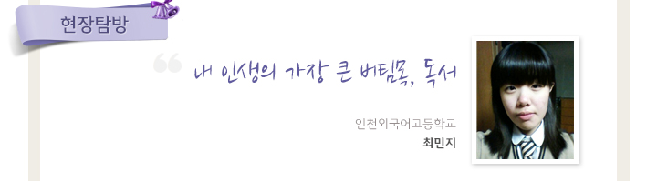 중학교 시절, 외고에 입학하기 위해 땀 흘리며 공부했던 그 어려운 시기를 이겨내기 위해 하나의 버팀목이 되어준 것이 바로 책이었던 것이다.
