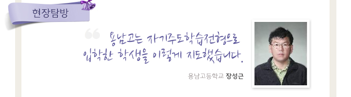 평소 용남고 입시의 경우 중학교 내신 10% 이내의 성적을 가진 학생들이 1~2명 지원하였었는데, 지역에 많은 홍보와 중3 학부모들과의 전화 상담, 상설 입시 상담실 운영,