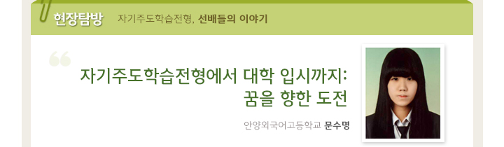 ● 자기주도학습으로 외고입학부터 입학사정관전형, 특기자전형으로 대학입학에 이르기까지-자신의 강점은 최대로, 약점은 최소로