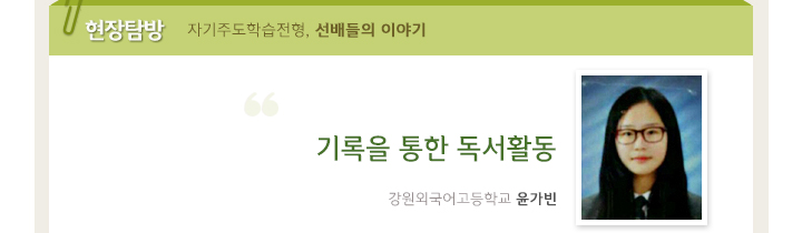 즐겁고 원해서 하는 일이 되었다. 또한 그냥 독서록을 작성 했을 때보다 책의 내용이 더욱 인상 깊고 선명하게 머릿속에 남았다. 고등학생이 되어서는 시간이 많이 없어서