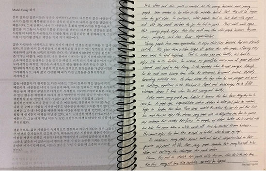 중학생이 되면서 본격적으로 영어공부를 시작하게 되었다. 우리말로 먼저 쓴 후, 영어로 번역하는 연습을 시작했다. 얼마 지나서 직접 작문교본을 인터넷에서 다운을 받아 번역하는 것을 연습하였다. 한쪽에는 한글, 반대쪽에는 한글을 보고 영작을 하는 방식이었다. 문장을 만들어가는 과정 초기에는 잘 모르는 어휘들이 많았지만 문맥 속에서 의미를 유추하면서 어휘들을 차근차근 익혀나갔다. 덕분에 무작정 단어장을 들고 암기하는 것보다 더욱 효율적으로 어휘를