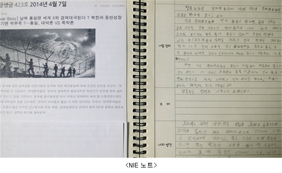 무엇보다 NIE 학습을 통해 꿈을 구체화할 수 있었다. 스크랩한 관심기사들의 주제는 처음엔 사회전반에 걸쳐 있었으나 점차 ‘세월호 사건 이후의 내수쇼크’, ‘도서정가제’ 등 경제 분야로 좁혀졌다. 사회의 변화를 야기하고 또 그 변화에 다시 개인이 영향을 받는 등 끊임없이 사회와 상호작용하는 경제에 흥미를 느꼈다. 이 과정을 통해 ‘경제전문기자가 되어 경제주체 간 정보 비대칭 문제를 해소하는 정의의 수호자 역할과 국가경제정책 수립의 조언자 역할을 수행하자!’는 구체적인 꿈이 생긴 것이다.
